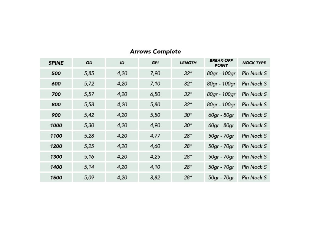 Každý šíp je dodáván již s instalovanými letkami a hrotem, což umožňuje okamžité použití bez nutnosti další kompletace. Letky mají profil typu Shield, který zajišťuje stabilní rotaci a dobré vedení šípu během letu.