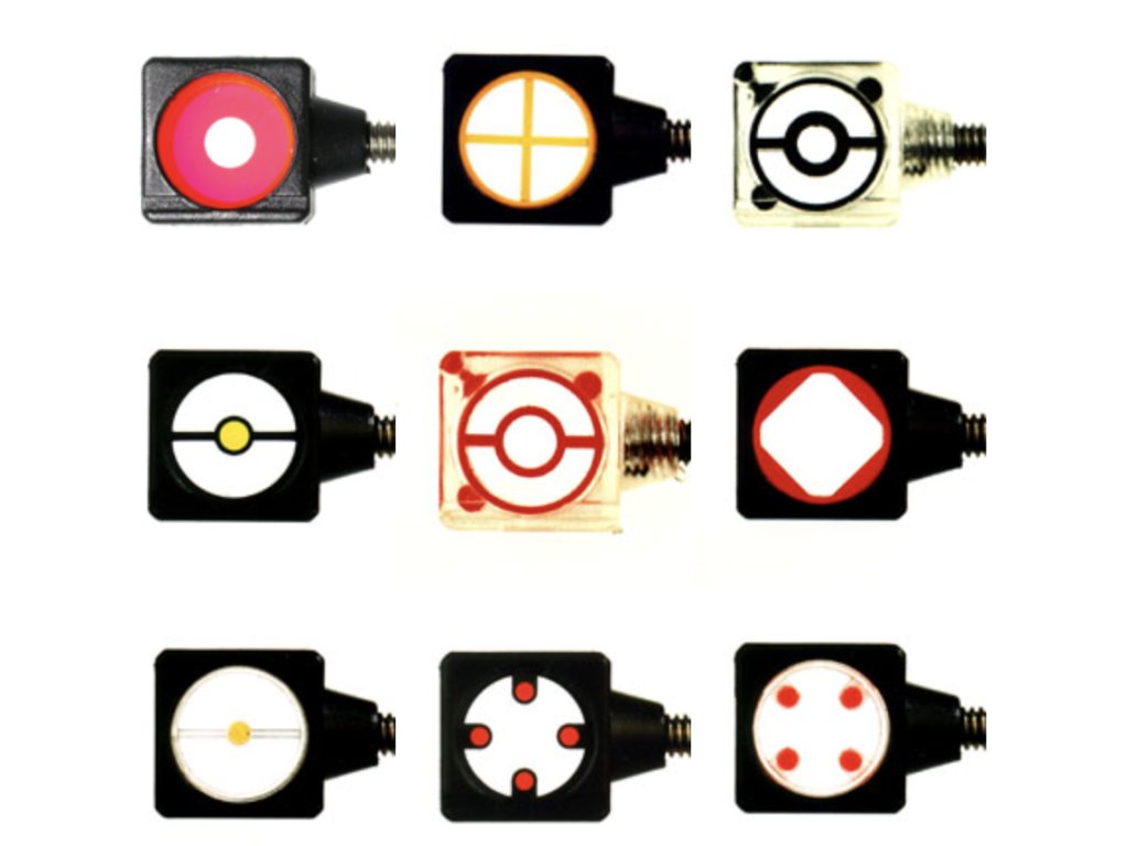 K dispozici jsou inserty ve tvaru kříže, s fluorescenčním pinem, otvoru, tečky nebo čtverce. Rovná linie čtvercového tvaru umožňuje oku velmi přesné zarovnání kruhového terče nebo bodu, což napomáhá konzistentnímu zamíření, případně přemiřování.